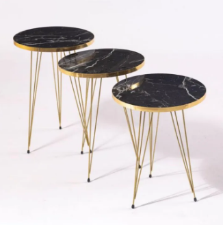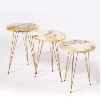 This set of 3 Round Side Tables features modern-style hairpin legs with a high-quality White Marble effect tabletop with stunning gold detailing within the marble effect, around the edge of the table and also features gold legs. A great way to introduce rich metallic colors into your home. Having a set of 3 tables means you can continue your decor style throughout your home. Ideal for your living room, bedroom, study, and more.