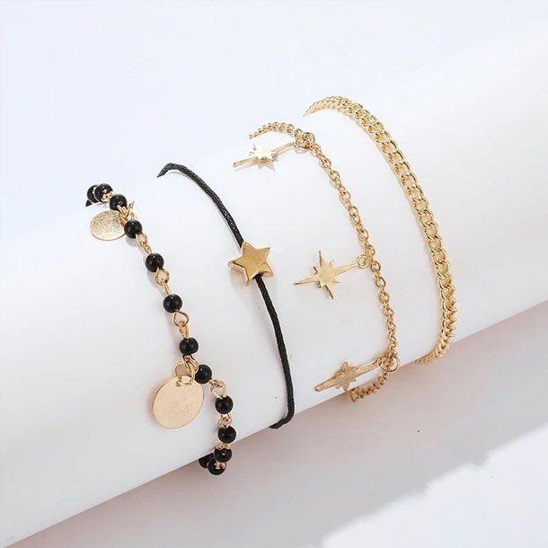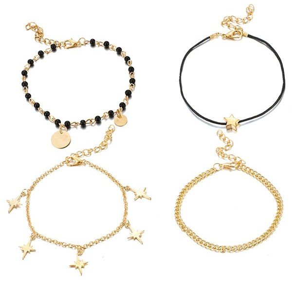 4pcs/sets Colorful Beaded Anklets for Women Star