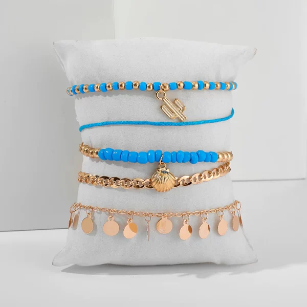 5pcs/sets Bohemian Gold Wafer Anklets for Women