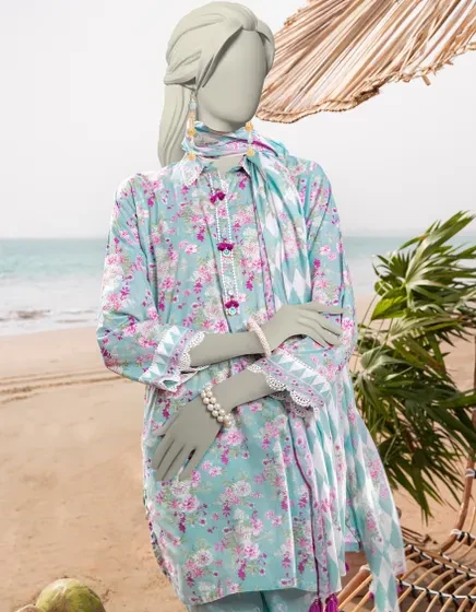 BLUE LAWN PRINTED UNSTITCHED 3PC | JLAWN-S-25-3050