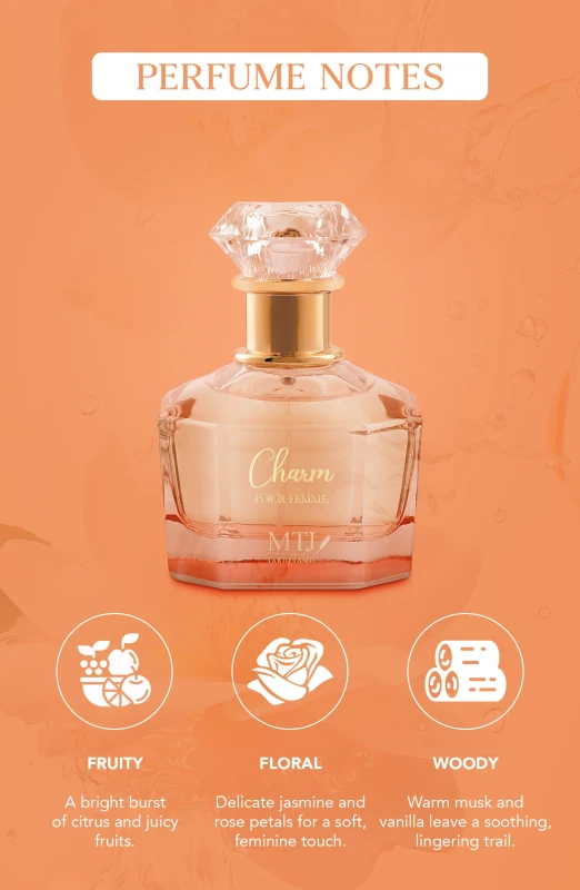 Charm pour Femme is an enchanting floral fragrance that captivates the senses and embodies elegance.