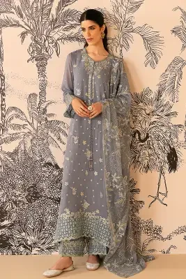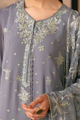 • Cross Stitch Smoke Blue Unstitch 4 Piece Suit For Women and Girls - Designcode: 0124RTSEMBCHFENG0303