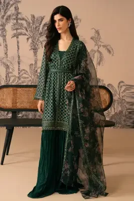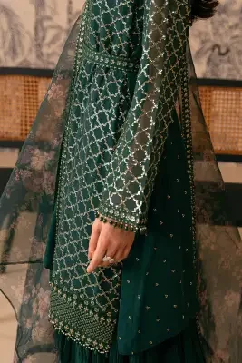 Product details of Cross Stitch Viridian Haven Unstitch 4 Piece Suit For Women and Girls - Designcode: 0124RTSEMBCHFENG0302 - Collection: Luxe Atelier