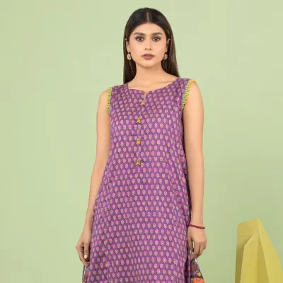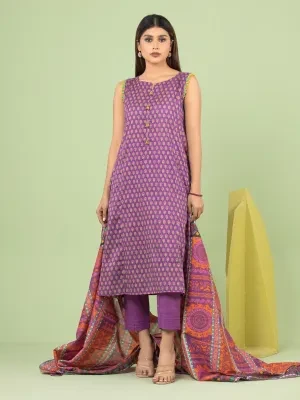 edenrobe Purple Printed Lawn 3 Piece Unstitched - EWU23A1-26037