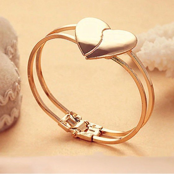 Frosted Heart-shaped Glossy Double Heart Gold Bracelet