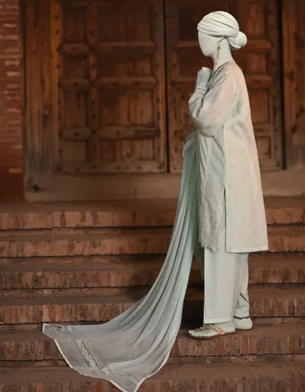 Collection: Embroidered Dobby Shirt, Dyed Lawn Trouser, Embroidered Chiffon Dupatta