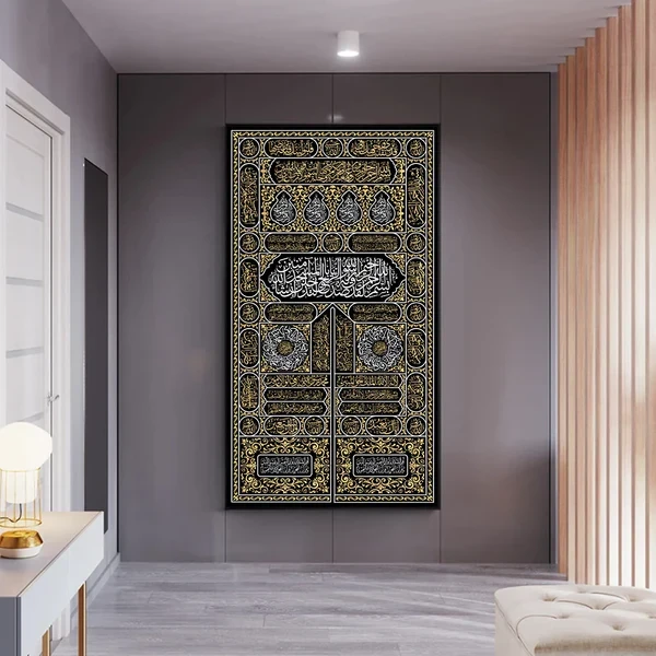 Kharedlo.pk is offering exquisite piece features Islamic calligraphy inspired by the door of the Holy Kaaba in Mecca, a symbol deeply revered in Hajj rituals and Islamic tradition. .large 24+48 inches...