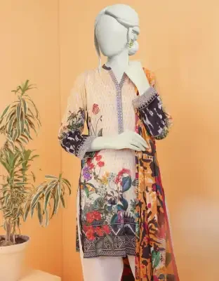 • Embroidered 2 PieceDigital Printed Lawn Dupatta: 2.5 Meters