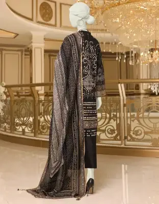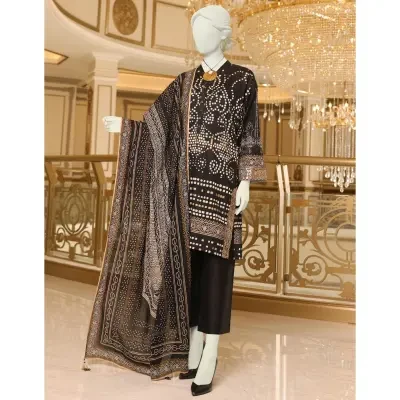 • Junaid Jamshed Black Lawn 3 Piece Unstitched Suit for Women JLAWN-S-23-024 Allure