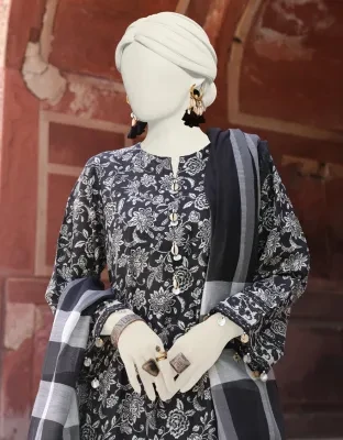 Junaid Jamshed J. Women Unstitched 2 Piece Shirt Dupattafor Women And Girls - Fabric: Lawn - Color: Black -Collection: Eid Tehwar Edit Vol. - Designcode: Jlawn-S-Jds-24-1136