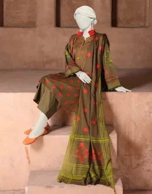 Junaid Jamshed J. Women Unstitched 2 Piece Shirt Dupattafor Women And Girls - Fabric: Lawn - Color: Green -Collection: Eid Tehwar Edit Vol. - Designcode: Jlawn-S-Jds-24-1127
