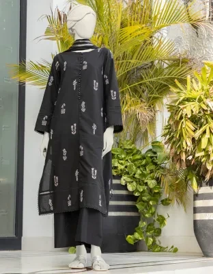 • Junaid Jamshed Women Unstitched 3 Piece for Women And Girls - Fabric: Cambric - Color: Black -Collection: Eid Tehwar Edit Vol. - Design code: Jlawn-S-24-375 Khila