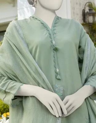Junaid Jamshed J. Women Unstitched 3 Piecefor Women And Girls - Fabric: Cambric - Color: Green -Collection: Eid Tehwar Edit Vol. - Designcode: Jlawn-S-24-371 Khila