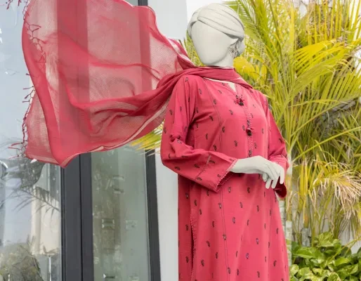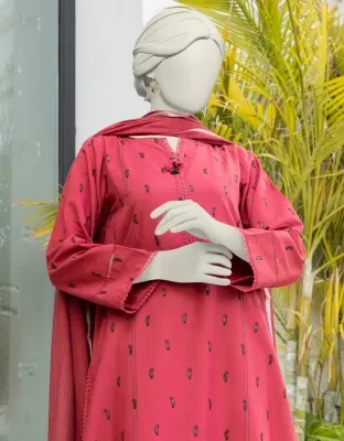Junaid Jamshed J. Women Unstitched 3 Piecefor Women And Girls - Fabric: Cambric - Color: Red -Collection: Eid Tehwar Edit Vol. - Designcode: Jlawn-S-24-378 Khila