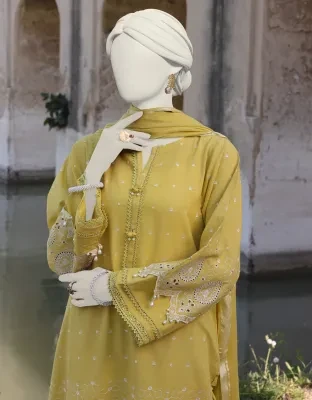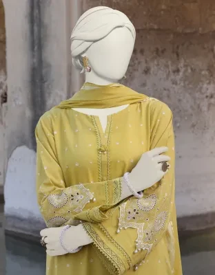 Junaid Jamshed J. Women Unstitched 3 Piecefor Women And Girls - Fabric: Cambric - Color: Yellow -Collection: Eid Tehwar Edit Vol. - Designcode: Jlawn-S-24-488 Schif