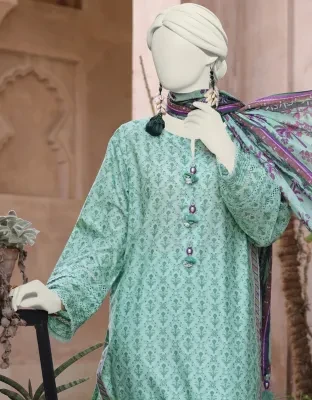 Junaid Jamshed J. Women Unstitched 3 Piecefor Women And Girls - Fabric: Lawn - Color: Green -Collection: Eid Tehwar Edit Vol. - Designcode: Jlawn-S-24-528 Bahar