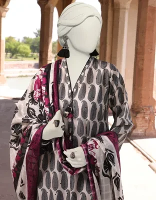 749 - Embroidered Mill Print Lawn Shirt - Dyed Basic Lawn Trouser - Basic Mill Print Textured Fabric Dupatta