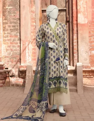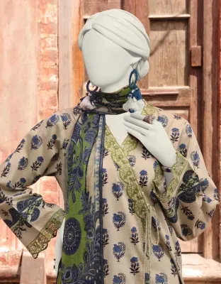 520 - Embroidered Digital Print Lawn Shirt - Dyed Basic Lawn Trouser - Basic Digital Print Impure Chiffon Dupatta