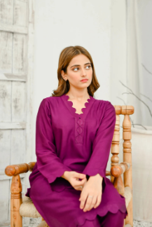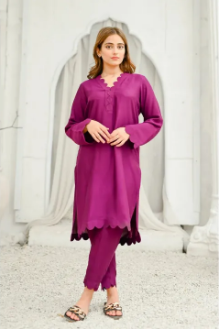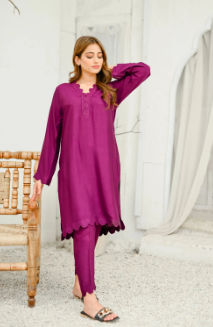 Product details of Khayaal Khaadi Net Solid Deep Purple 2PC Suit for Girls