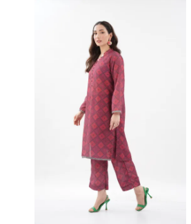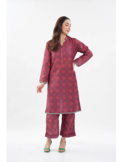 Product details of Maahru - Dress For Women - 2 PC Stitched Shirt & Trouser - Mahogany Magic