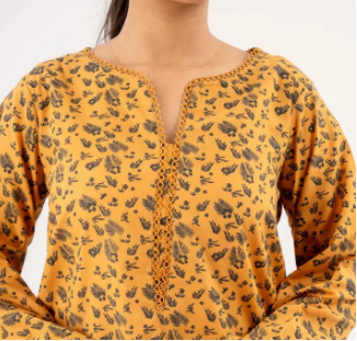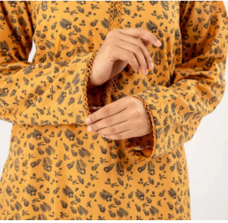Product details of Maahru Stitched 2 PC Shirt & Trouser - Golden Bloom