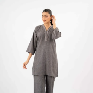 Product details of Maahru Stitched 2 PC Shirt & Trouser - Graphite Grace