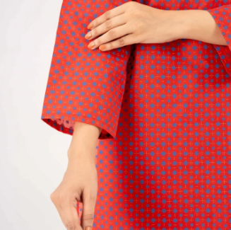 Scarlet Desire combines boldness and tradition with its deep red base and geometric blue patterns. This vibrant combination of colors and intricate design creates a standout look, perfect for festive occasions or stylish daywear. The soft, breathable fabric ensures comfort, while the striking contrast of hues makes this matching separates set a must-have for women who enjoy making a bold fashion statement. Ideal for those looking to bring a pop of color to their wardrobe.