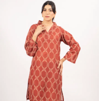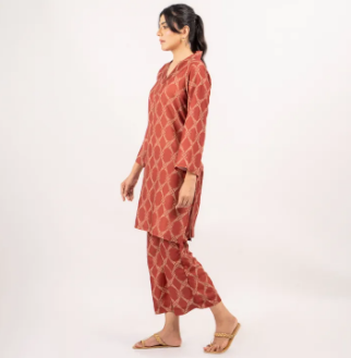 Maahru - Stitched Dress for Girls - 2 piece Shirt & Trouser for Women - Maroon Gold Shirt and Pant This elegant 2-piece stitched matching separate set is crafted from premium blended soft Swiss lawn fabric, offering comfort and style for any occasion. Ideal as both a 2-piece suit for women and a versatile dress for girls, this outfit is perfect for those who want a chic and effortless look.The shirt features a sophisticated design with intricate detailing and is complemented by a printed pattern that enhances the overall aesthetic. The carefully tailored stitching ensures a perfect fit while maintaining a comfortable feel, making it a go-to choice for casual outings, semi-formal events, or everyday wear. The soft Swiss lawn material offers a breathable and lightweight experience, making it ideal for all-day comfort, even in warmer climates.The matching trouser is designed to pair seamlessly with the shirt, creating a cohesive and polished look. The trouser is also made from the same high-quality blended Swiss lawn, ensuring a smooth and flattering silhouette. The printed pattern on the shirt adds a touch of modern elegance while still retaining a classic appeal.Whether you’re looking for a stylish stitched dress for girls or a refined ensemble for women, this 2-piece suit delivers versatility and charm. The design blends traditional aesthetics with contemporary fashion, making it suitable for all age groups. It’s an excellent choice for those who appreciate both fashion and comfort, offering a perfect balance between trendy and timeless.This outfit is a must-have in any wardrobe, providing a ready-to-wear solution that combines quality craftsmanship, stylish design, and the comfort of Swiss lawn fabric.