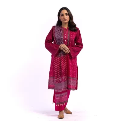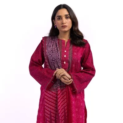 Radiate charm with the Pink Orchid ensemble. The vibrant pink color combined with elegant orchid tones creates a harmonious and delightful appearance. This unstitched 2-piece suit allows for creative styling ensuring a charming and feminine look.