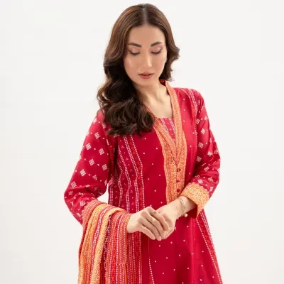 Elevate your summer wardrobe with our unstitched 3 piece cotton vibrant suit, a perfect canvas for the fashion-savvy woman in search of clothes for girls that seamlessly blend style and comfort. Tailored to perfection, this shalwar kameez ensemble allows you to unleash your creativity and style it according to your unique preferences.
