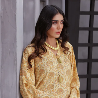 Product details of Mahi Apparels 2 Piece Digital Printed Winter Karandi Stitched Suit for Women - Golden Hour Dress For Girls