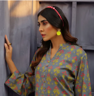 Grace, a delicate look digital print winter karandi co-ord sets ensemble with matching printed buttons and round shape daman.
