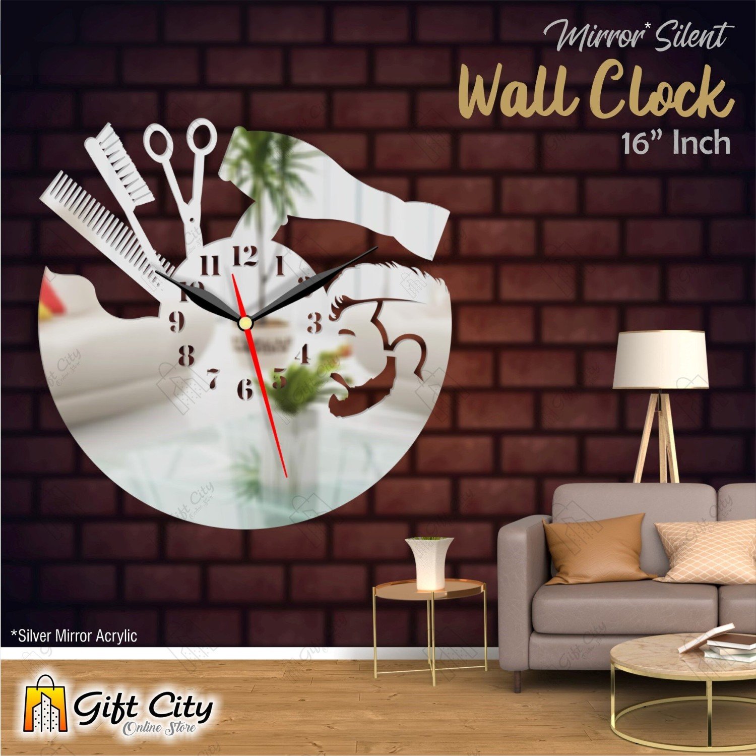 Mens Beauty Salon 3D Silent Wooden Wall Clock