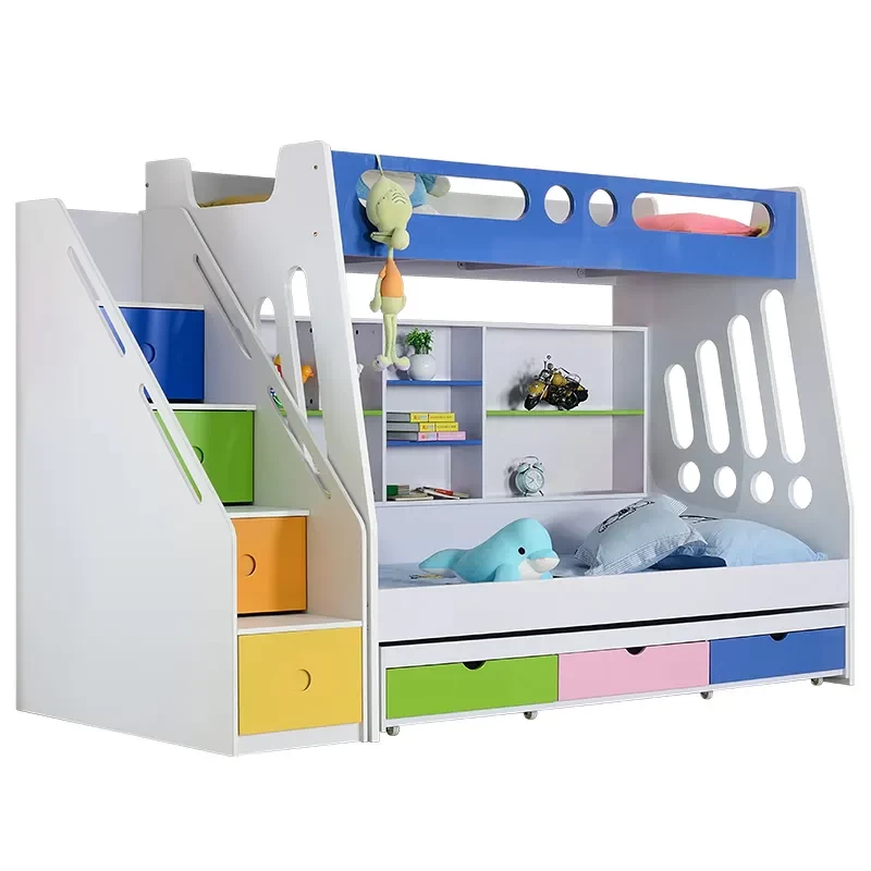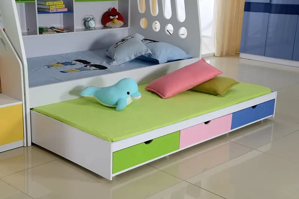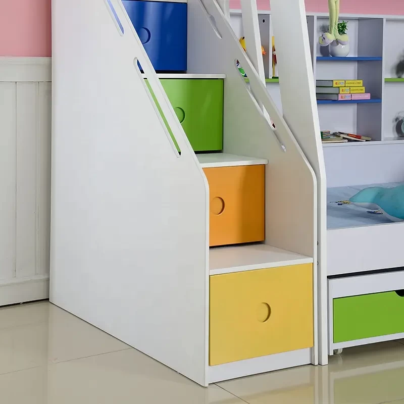 • Stairs Side White kids bunk bed is a very attractive design and charming for kids. it is available in Navy blue & Gray contrast for boys. and available in pink & white contrast for girls