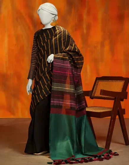 MULTICOLOR VISCOSE YARN DYED SAREE