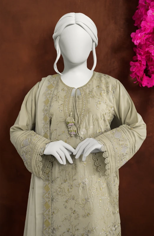 Premium Embroidered Dyed Twisted Silk Front 35"