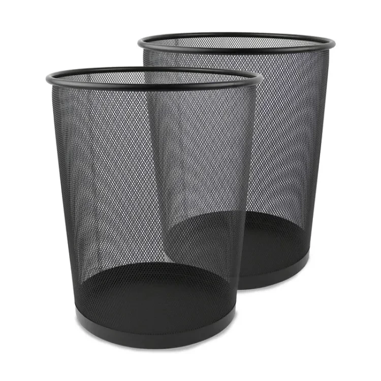 Office living room household round black paper trash can mesh waste bin wire metal decorative waste paper bin