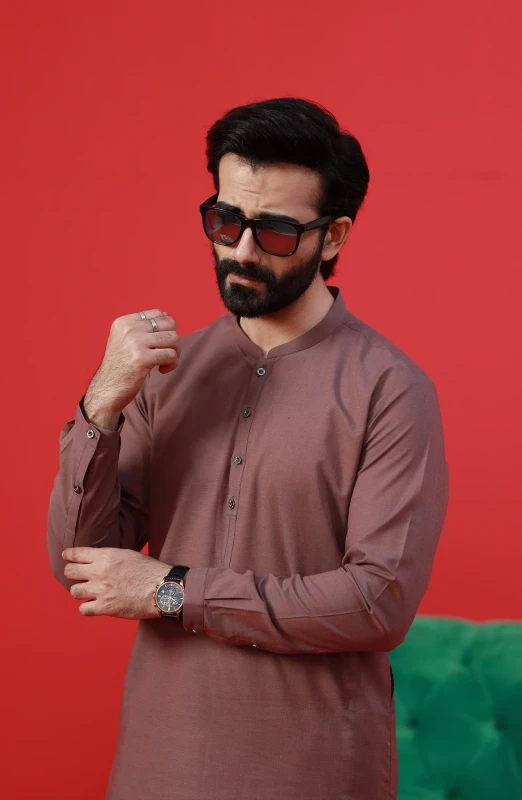 PRE WINTER'23 MEN KURTA PAJAMA SEMI FORMAL LIGHT MAROON