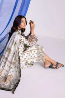 Exude elegance with this two piece ensemble featuring printed A line silhouette paired with matching voil dupatta. A line Shirt