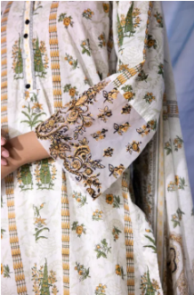 Printed Front, Printed Back, Y Neckline, Full Sleeves with Embroidered Border