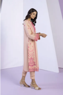 Embroidered front, Plain Back, Round Neckline with Slit, Full Embroidered Sleeves
