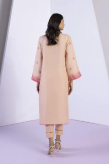 Look classy in this elegant peach hued embroidered A-line silhouette paired with cigarette pants.A line Shirt