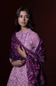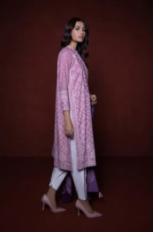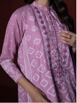 Printed Front with Embroidered Neckline, Printed Back, Band with Slit, Full Sleeves