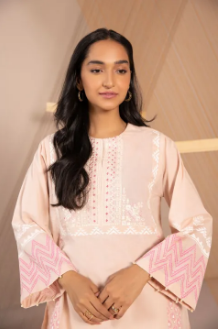Block Printed Embroidered Front, Plain Back, Round Neckline with Slit, Full Sleeves
