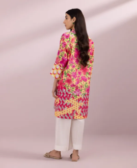 Printed Front, Printed Back, Quarter Sleeves, Band Neckline with a slit