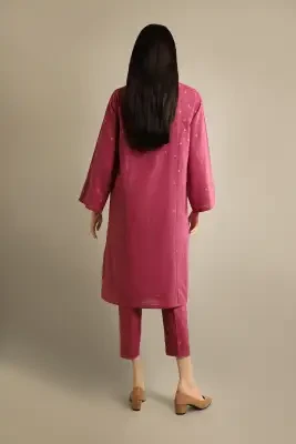 • Saya Unstitched 2 Piece Suit Jacquard Cotton (Shirt/Trouser) For Women and Girls - Color: Pink - Design code: WU2P-3412 -Collection: Neeli vol 2 2024