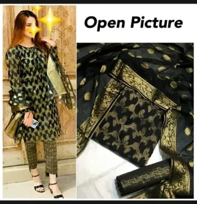 • • ✔️Organza Jacquard Unstitched 3 Piece Suit for Women