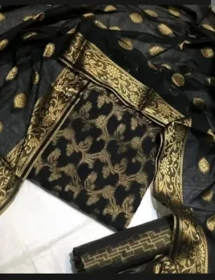 Specifications of Shah Kamal Fabrics Cotton Jacquard 3 Piece Unstitched Suit With Cotton Dupatta & Banarasi Trouser-Black