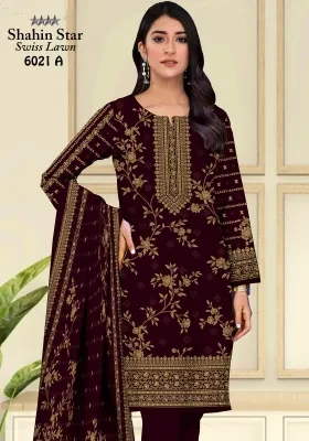Shahin Star Swiss Lawn Premium Quality Unstitched 3piece Suit DN#6021-A