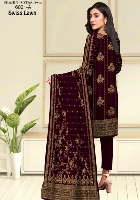 Product details of Shahin Star Swiss Lawn Premium Quality Unstitched 3piece Suit DN#6021-A
